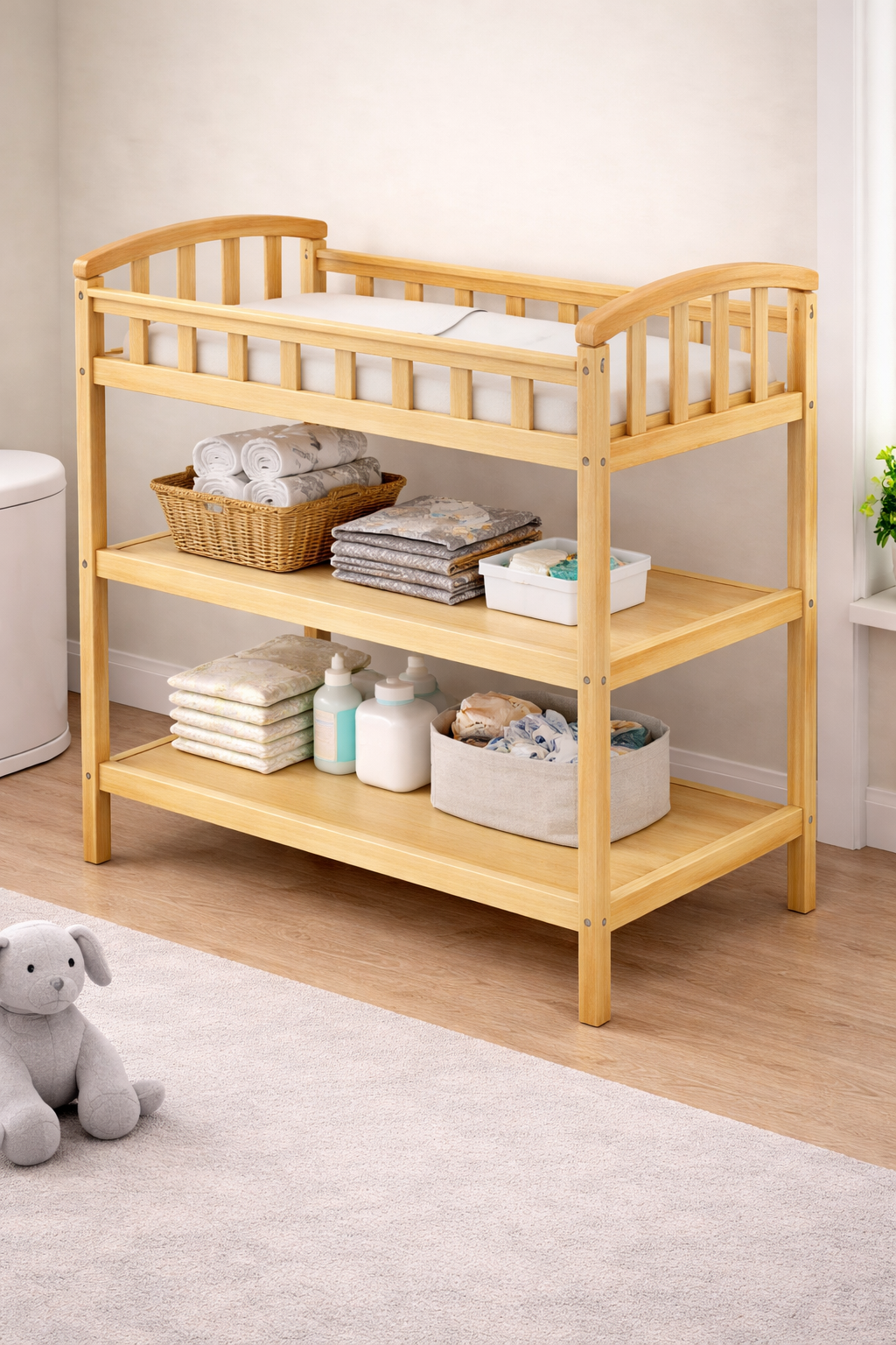 Practical, durable, and thoughtfully designed, this changing table is a reliable addition to any nursery focused on safety and organization.